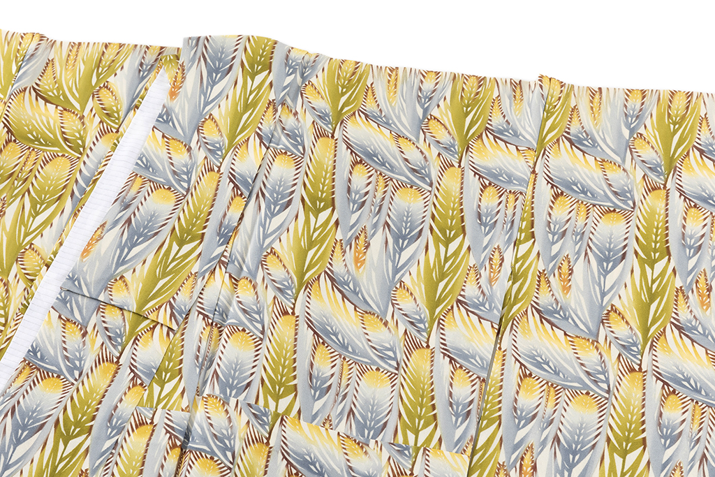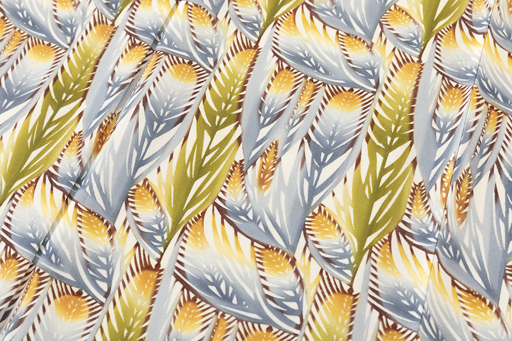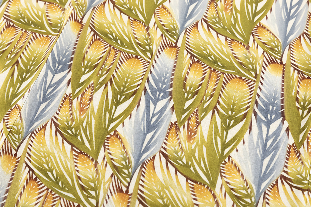 分業でなされるものとは違って手仕事の積み重ねでもある型絵染は、デザインを起こし、型を彫り、糊を置き、色を挿して、蒸して水洗いを繰り返し、その美しい模様が生まれます。