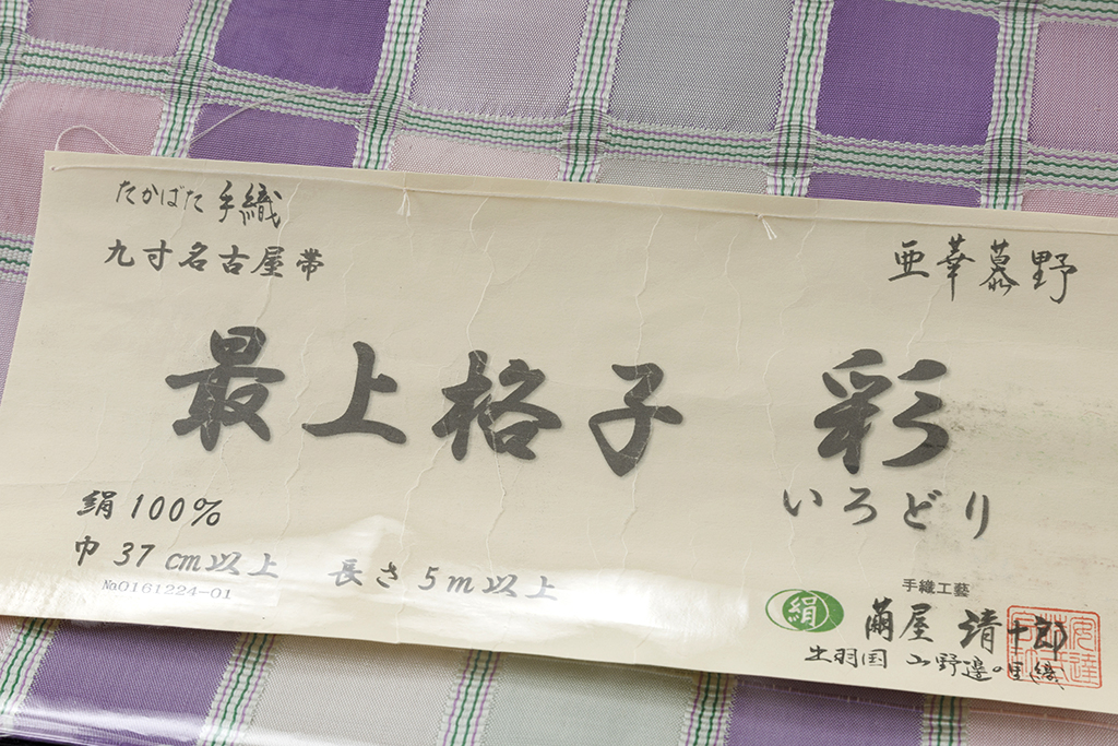 最上格子織 九寸名古屋帯地 「彩」 未仕立て品
