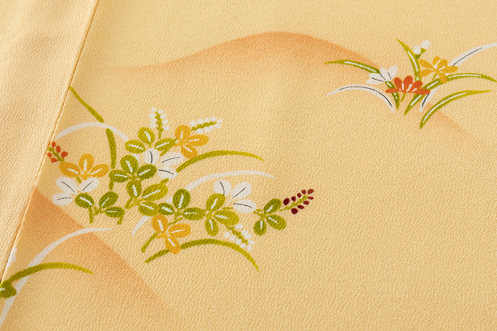 また、志ま亀の染色は、華やかながら誰にでもなじむようにひと味抑えた品のある色使いも特徴の1つです。
