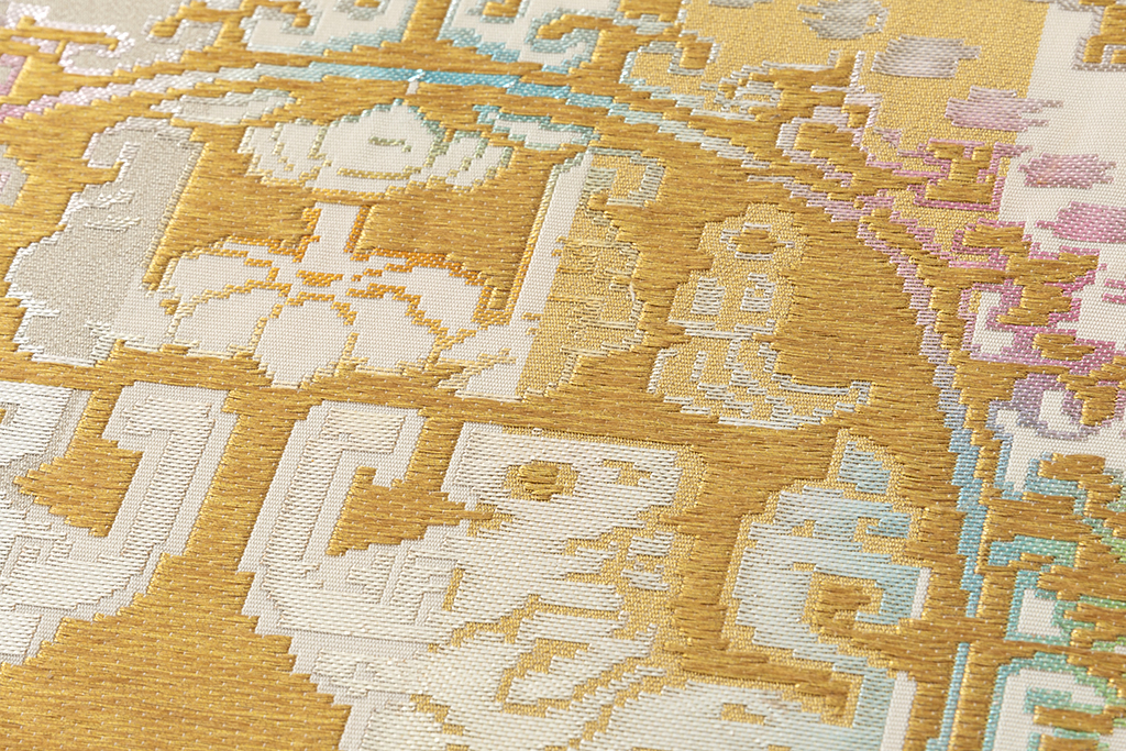 西陣織とは、「多品種少量生産が特徴の京都(西陣)で生産される先染(さきぞめ)の紋織物」の総称です。
